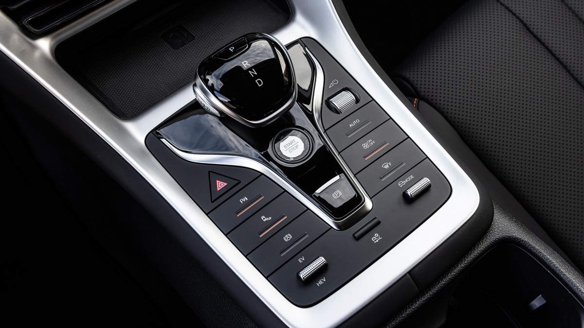 Η κονσόλα του είναι τύπου «γέφυρας» και διαθέτει επιφάνεια ασύρματης φόρτισης smartphone ισχύος 15 W, τον μικρό, κομψό μοχλό για την επιλογή της φοράς κίνησης του αυτοκινήτου και διακόπτες.