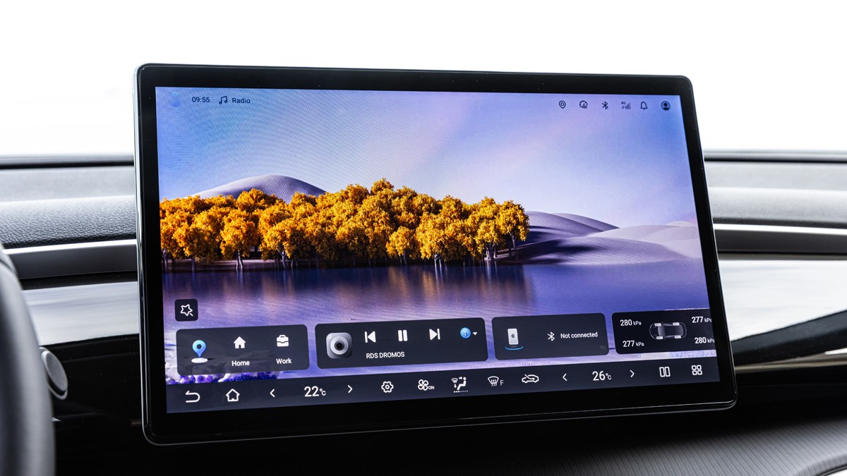 Να επισημάνουμε ότι στο Sealione 5 DM-i η τελευταία δεν περιστρέφεται κατά 90 μοίρες, όπως σε άλλα μοντέλα της ως τώρα, κάτι που είναι ιδιοτυπία της BYD Auto. Αυτό επειδή προς στα τέλη του 2025 τα στελέχη της αποφάσισαν να σταματήσουν να παρέχουν αυτή τη δυνατότητα λόγω του ότι δεν ήταν τόσο χρηστική και προκαλούσε προβλήματα συμβατότητας σε εφαρμογές, όπως το Android Auto. και Apple CarPlay.