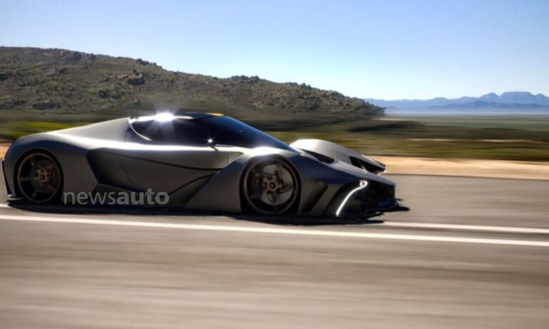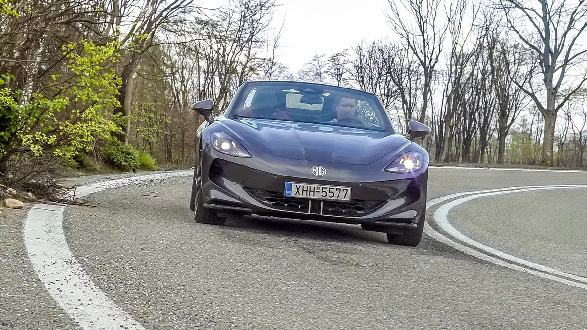 Στο πλάι, το αμάξωμά του δείχνει την επιμηκυσμένη σιλουέτα του. Ξεχωρίζουν οι λεπτές εμπρός κολόνες, οι μεγάλες γυάλινες επιφάνειες και οι έντονα διαμορφωμένοι θόλοι των τροχών.
