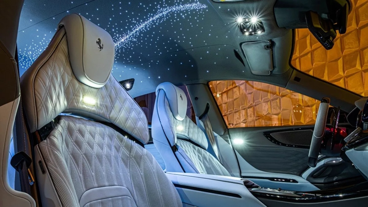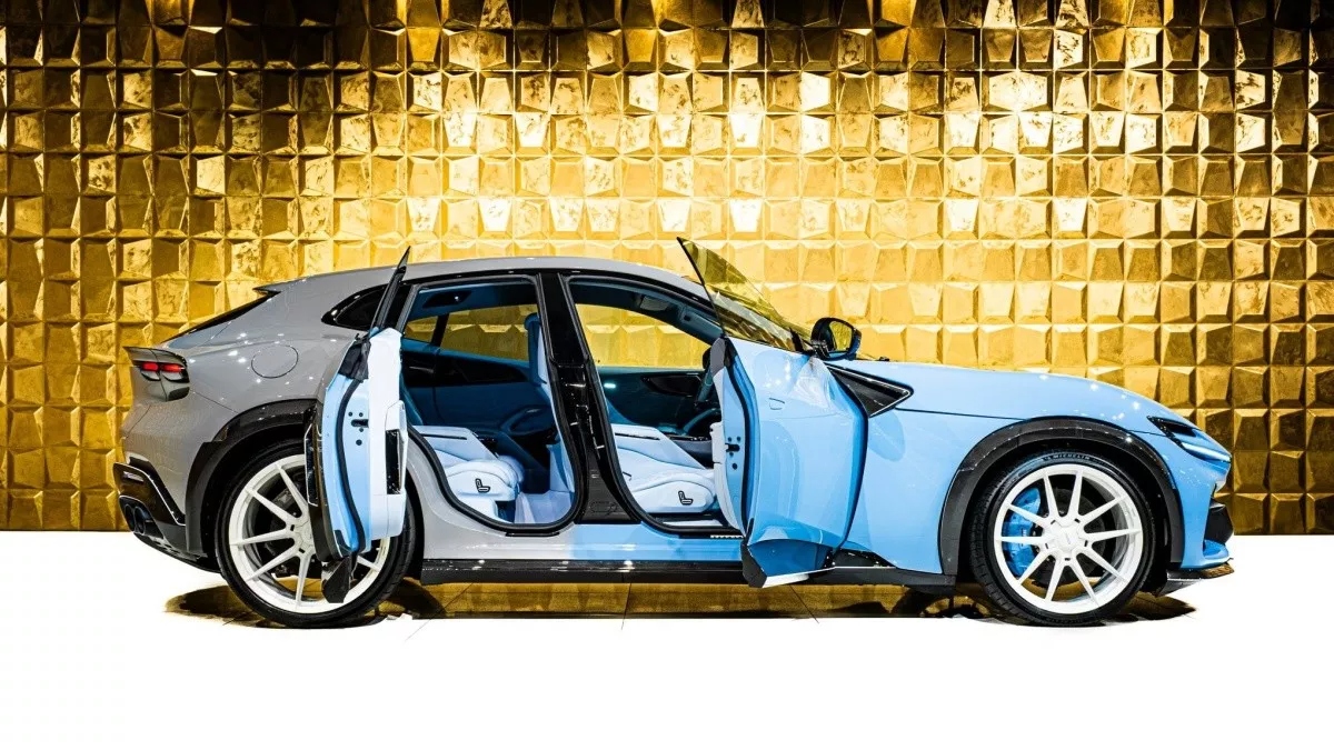 Ένας από τους βασικούς λόγους της ασύλληπτης τιμής της Purosangue είναι και το μοναδικό φινίρισμα. Το αμάξωμα είναι βαμμένο σε μια σπάνια διχρωμία που συνδυάζει το εμβληματικό γκρι «Grigio Nardo» με το εξωτικό γαλάζιο «Azzuro La Plata». Στο εσωτερικό, η πολυτέλεια χτυπάει «κόκκινο» με επενδύσεις Chiaro Azzurro και Grigio, με τις διακοσμητικές επιφάνειες να είναι σε γυαλιστερό μαύρο χρώμα (Glossy Black).