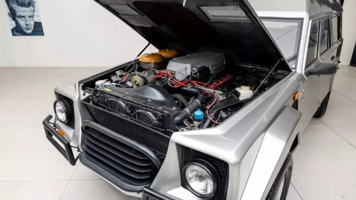 Κάτω από τη φθαρμένη πλέον ασημί βαφή κρύβεται ο V12 των 5,2 λίτρων της Countach QV, με 449 ίππους και έξι Weber καρμπιρατέρ, τα οποία ανακατασκευάστηκαν το 2024. Η ισχύς μεταφέρεται μέσω χειροκίνητου κιβωτίου ZF και τρία μπλοκέ διαφορικά.