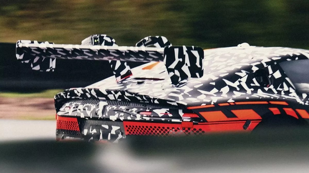 Το πρωτότυπο δείχνει φτιαγμένο για μέγιστη απόδοση στην πίστα, με ακραία αεροδυναμική και μακρύ καπό που κρύβει έναν V8 κινητήρα.