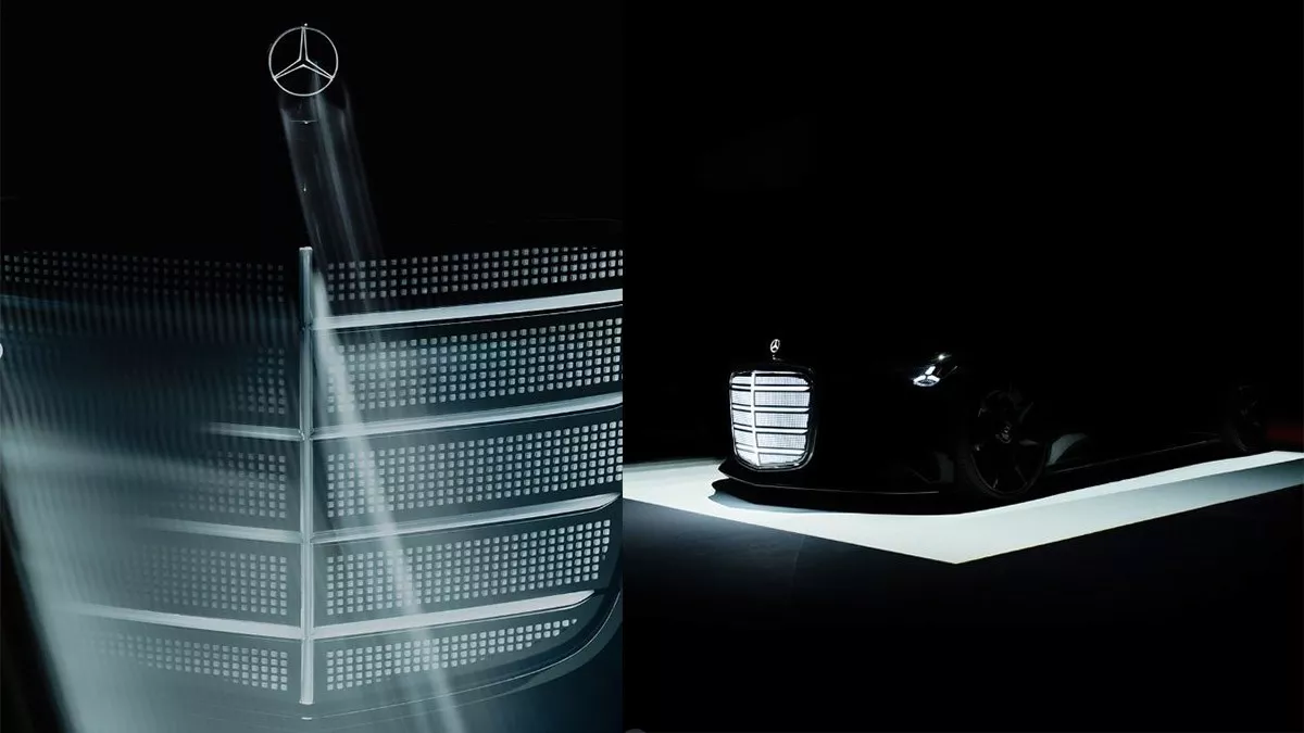 Το teaser, δημοσιευμένο από τον επικεφαλής σχεδίασης Gorden Wagener, αποκαλύπτει ένα εμπρός τμήμα με τεράστια, φωτιζόμενη μάσκα και τρισδιάστατα φώτα σε σχήμα αστέρα, μια υπογραφή που μόνο η Mercedes θα τολμούσε να επαναφέρει.